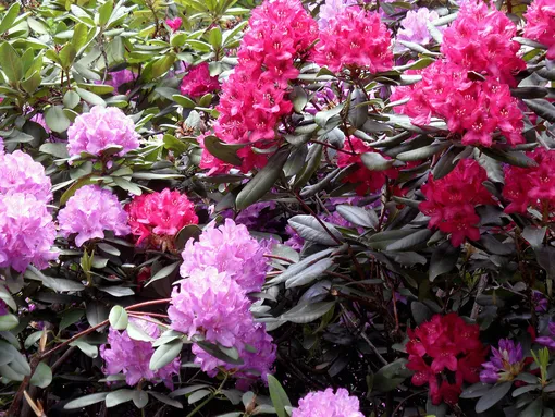 Rhododendron. Jeden z nejkrásnějších kvetoucích stínomilných keřů, které lze pěstovat v polostínu. Rododendrony jsou obyvateli kyselých půd, dobře rostou na rašeliništích a borových lesích, při výsadbě na neutrální půdě je nutná speciální příprava výsadbové jámy a pravidelné okyselování půdy. Existuje několik druhů rododendronů, včetně rododendronu japonského, žlutého, kanadského, hustého, jakushimanského a schlippenbachského rododendronu jako stínomilné keře pro oblast Moskvy. Bylo vyšlechtěno mnoho odrůd a hybridů s různým stupněm zimní odolnosti a náročnými podmínkami, proto si před nákupem nezapomeňte zjistit vlastnosti vybrané odrůdy. Rododendrony jsou většinou vodomilné, lze je tedy vysadit v blízkosti jezírka.