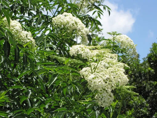 Kalina. Kalina obecná (červená) a kalina se vysazují jako stínomilné stromy a keře do zahrady. Kalina roste dobře v polostínu, je nenáročná a nevyžaduje prakticky žádnou péči. Koncem jara a začátkem léta kvete bílými květy v corymbosových květenstvích, je zde krásná pěstovaná forma Buldenezh s velmi velkými a hustými kulovitými květenstvími. Plody kaliny jsou jedlé a někdy se pěstuje právě pro ně. Kalina vyžaduje úrodnou neutrální půdu a vysokou vlhkost.